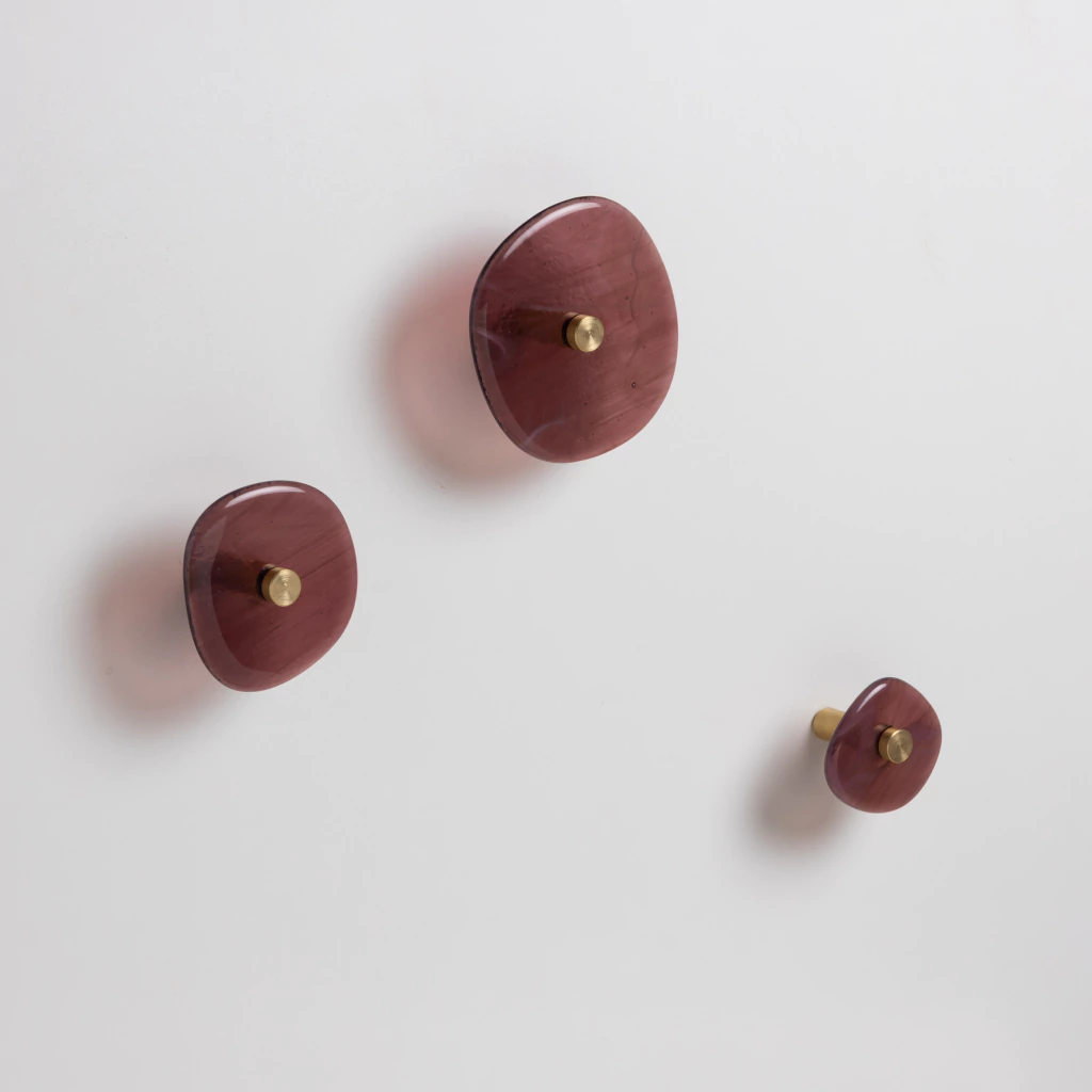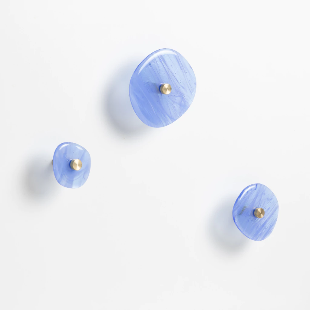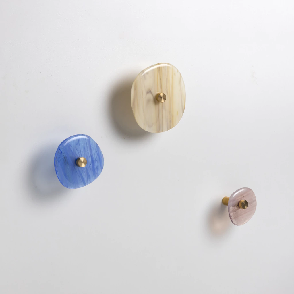 O Gancho ÓRBITA é um gancho de parede feito em vidro artesanal e suporte metálico. Pode ser utilizado para pendurar roupas, acessórios e também como um objeto decorativo.