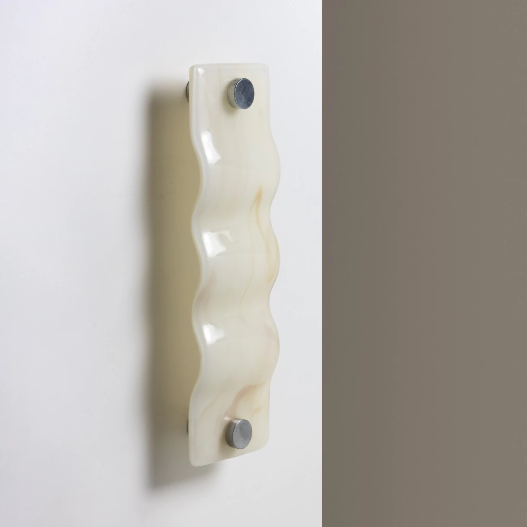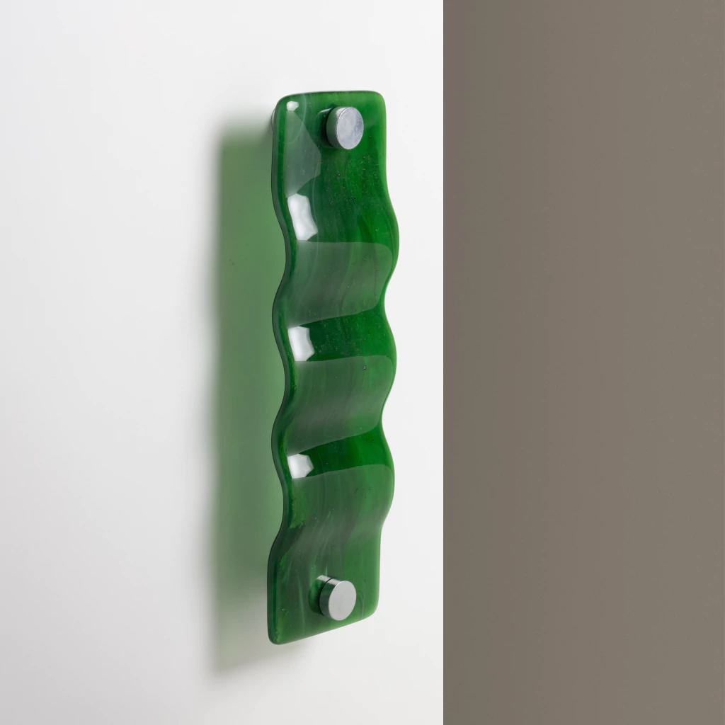 O Puxador de Porta MIRÓ é um puxador de porta duplo feito em vidro artesanal moldado e sustentado por dois suportes metálicos.